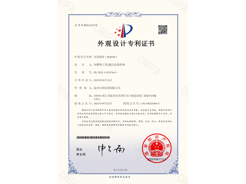 中國外觀設(shè)計專利:水浴搖床(ZL 2023 3 0121766.5)
